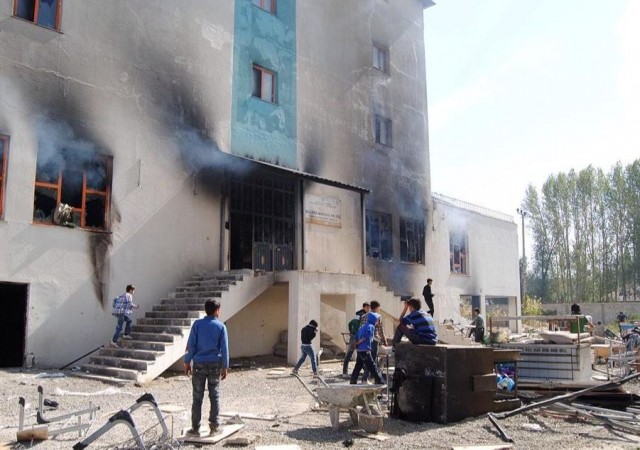 Στην συνέχεια και αφού είχε λήξει η πορεία “άγνωστοι” και πάλι έβαλαν φωτιά στο σχολείο της πόλης πυροδοτώντας νέο γύρο επεισοδίων.