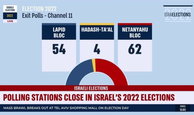 Οι κάλπες έκλεισαν στο Ισραήλ και τα πρώτα exit polls δείχνουν νίκη του μπλοκ του Μπέντζαμιν Νετανιάχου, το οποίο περιλαμβάνει το Λικούντ, το Θρησκευτικό Σιωνιστικό Κόμμα (RZP), τον Ενωμένο Τορά Ιουδαϊσμό (UTJ)