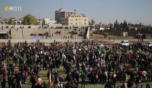 Την Κυριακή, χιλιάδες άνθρωποι του Κυβερνείου Χασάκα στη βορειοανατολική Συρία –κυρίως Κούρδοι– βγήκαν στους δρόμους της πόλης Καμισλί για να καταδικάσουν τη χρήση χημικών όπλων από την Τουρκία.