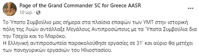 Ο Σκωτικός Τύπος της Ελλάδας ενημέρωσε με ανάρτησή του στο Facebook ότι, «το Ύπατο Συμβούλιο μας σήμερα στα πλαίσια επαφών των ΥΜΤ στην ιστορική πόλη της Λυών αντάλλαξε Μεγάλους Αντιπροσώπους με τα Ύπατα Συμβούλια δια την Τσεχία και το Μαρόκο.