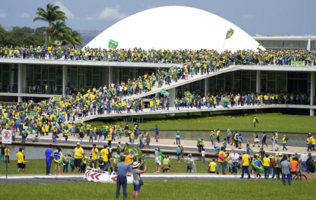Εκατοντάδες μπολσοναριστές, τυλιγμένοι με βραζιλιάνικες σημαίες ή φορώντας κίτρινα μπλουζάκια, έσπασαν τον αστυνομικό κλοιό και εισέβαλαν στο Κογκρέσο και σε κτίρια υπουργείων στην Μπραζίλια, σύμφωνα με πλάνα που μεταδίδουν τα τοπικά τηλεοπτικά δίκτυα αλλά και με βίντεο που ανάρτησαν σε ιστοτόπους κοινωνικής δικτύωσης ομάδες προσκείμενες στον πρώην πρόεδρο Ζαΐχ Μπολσονάρου.