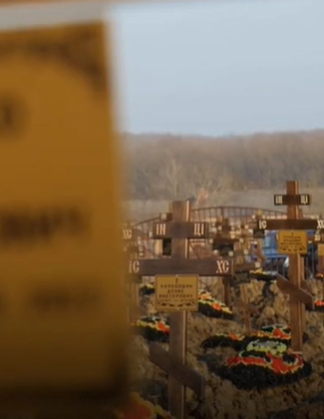 Άλλο ένα νεκροταφείο ανακάλυψαν οι κάτοικοι του χωριού Φριάνοβο έξω από τη Μόσχα: 22 τάφοι με τα ίδια κόκκινα, μαύρα και κίτρινα στεφάνια.