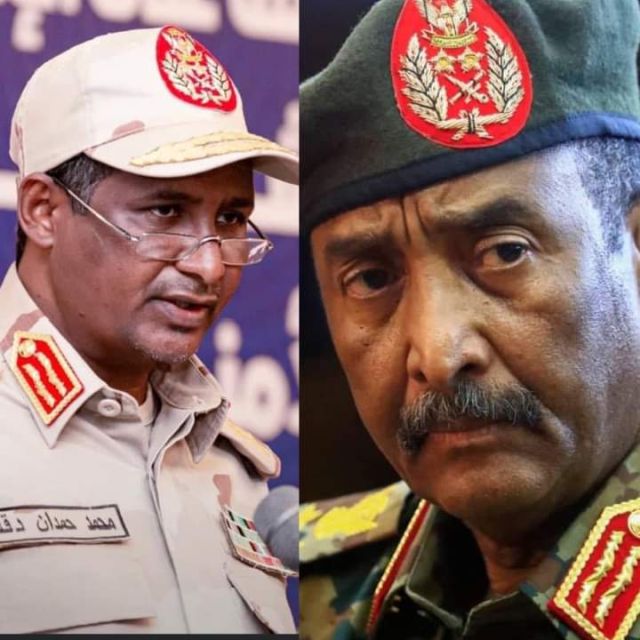 Αριστερά ο στρατηγός Μοχάμεντ Χαμντάν Ντάγκλο και δεξιά ο στρατηγός Άμπντελ Φάταχ αλ Μπουρχάν.