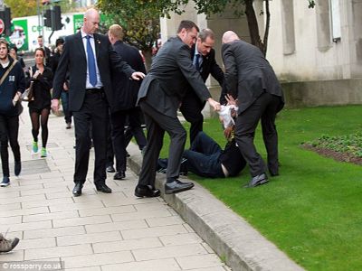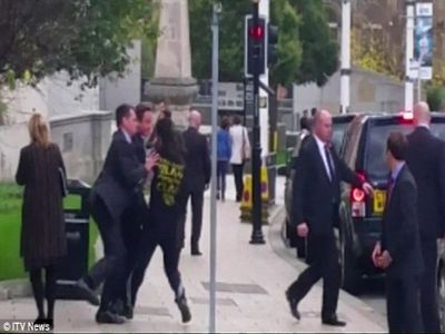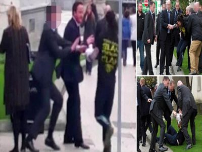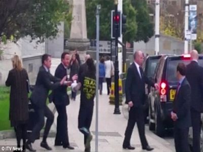 Στον Βρετανό πρωθυπουργό, Ντέιβιντ Κάμερον, επιτέθηκε ένας 28χρονος διαδηλωτής στο Λιντς, αφού πρώτα κατάφερε να τον πλησιάσει.