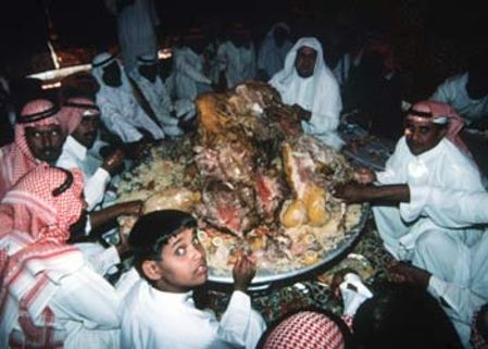 Το μεγαλύτερο πιάτο του κόσμου (έχει μπει και στο βιβλίο Γκίνες) είναι το εικονιζόμενο σαουδαραβικό πιάτο και περιλαμβάνει μια ολόκληρη καμήλα στη σούβλα, η οποία σερβίρεται με τον τρόπο που εμείς βάζουμε στο τραπέζι το αρνί. Μόνο που μια καμήλα είναι αρκετά μεγαλύτερη από ένα αρνί.