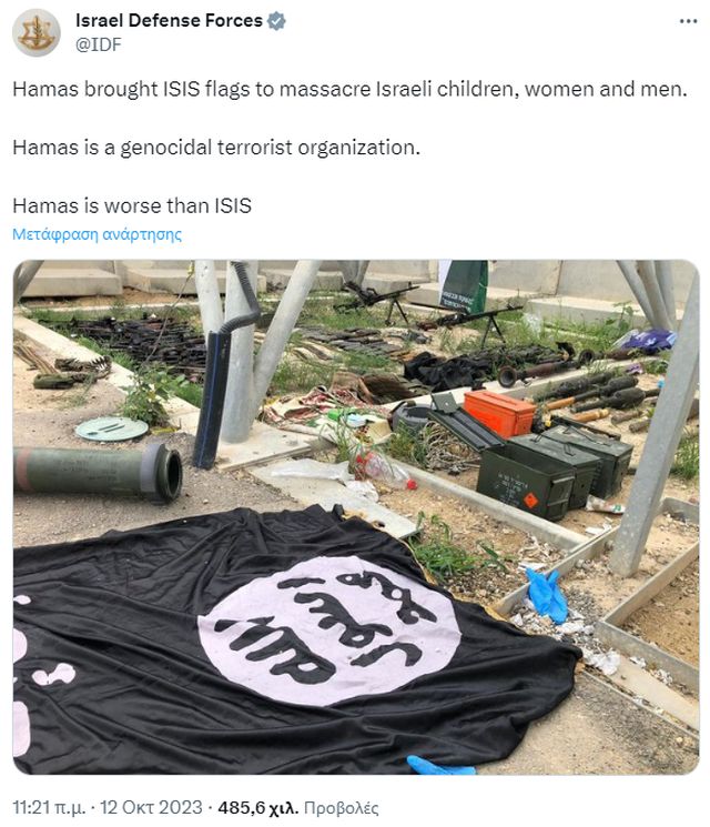 «Η Χαμάς έφερε σημαίες του ISIS για να σφαγιάσει Ισραηλινά παιδιά, γυναίκες και άνδρες.