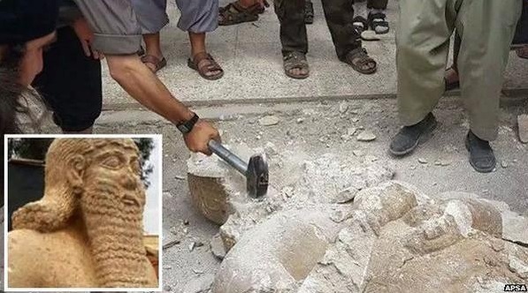 Οι παρανοϊκοί τζιχαντιστές με βαριοπούλες και γκαζμάδες συνθλίβουν αγάλματα και έργα τέχνης που επιβίωσαν στους αιώνες από προηγούμενους βαρβάρους.