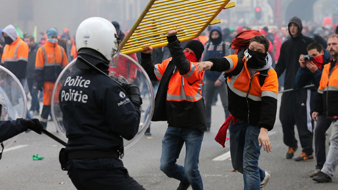 Στους δρόμους των Βρυξελλών κατέβηκαν σύμφωνα με τα στοιχεία από τα συνδικάτα περισσότεροι από 120.000 άνθρωποι, εργαζόμενοι, άνεργοι και φοιτητές για να διαμαρτυρηθούν για τα νέα μέτρα λιτότητας που πλέον θίγουν και το Βέλγιο, καθώς η κυβέρνηση προωθεί αύξηση των ορίων συνταξιοδότησης, πλαφόν στις μισθολογικές αποδοχές και σημαντικές περικοπές στις κοινωνικές δαπάνες.