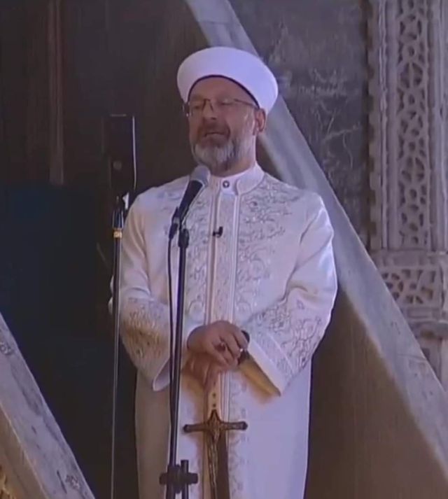 Ο Πρόεδρος Θρησκευτικών υποθέσεων, ιμάμης Αλί Ερμπάς, εκφώνησε το κήρυγμα κατά την προσευχή της Παρασκευής στην Αγία Σοφία.