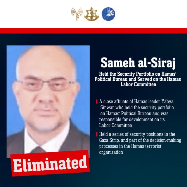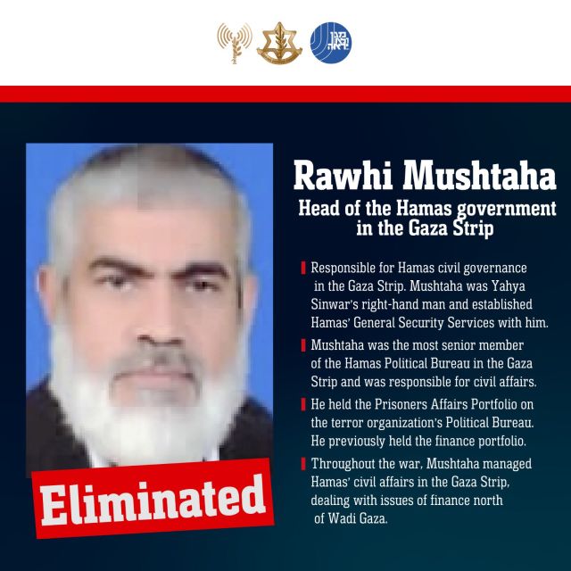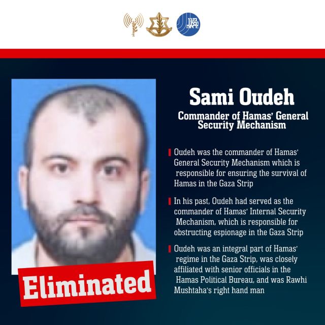 Κατά το ισραηλινό πλήγμα «εξοντώθηκαν οι ακόλουθοι τρομοκράτες: Ράουχι Μουστάχα, Σάμεχ αλ-Σιράζ, Σάμι Ουντέχ», αναφέρεται στην ανακοίνωση του ισραηλινού στρατού.