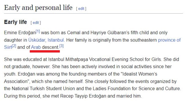 Ο ποντιακής ή λαζικής καταγωγής Ερντογάν με γυναίκα αραβικής καταγωγής, η Εμινέ είναι Αράβισσα, ωστόσο αμφότεροι παριστάνουν τους «Τούρκους», αυτοί οι μιγάδες είναι οι γείτονές μας, ένα συνονθύλευμα λαών της Μικράς Ασίας και της Μέσης Ανατολής που λόγω της νεο-τουρκικής πολιτικής του Κεμάλ έγιναν «Τούρκοι», αλλά στην πραγματικότητα παραμένουν θρησκόληπτοι και θεοκάπηλοι θεομπαίχτες νεο-οθωμανοί.