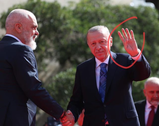 Ο εξωμότης ελληνικής καταγωγής γενίτσαρος Έντι Ράμα υποδέχτηκε την Πέμπτη 10/10 στα Τίρανα τον ισλαμοφασίστα Έρντογαν, ο οποίος χαιρέτισε με τον χαιρετισμό «ραμπιά»!