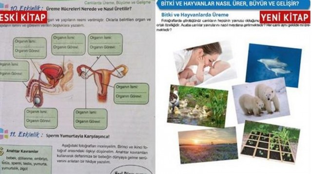 Όπως αποκαλύπτει στην Χουριέτ ο Αμπντουλάχ Τουναλί, ειδικός σχολικός ψυχολόγος, που παλαιότερα ήταν επικεφαλής της διδασκαλικής ομοσπονδίας στην Σμύρνη, στο φετινό σχολικό βιβλίο της επιστήμης και τεχνολογίας που διδάσκεται στην έκτη τάξη άλαξαντις φωτογραφίες στο κεφάλαιο “Αναπαραγωγή, ανάπτυξη και εξέλιξη του ανθρώπου”.