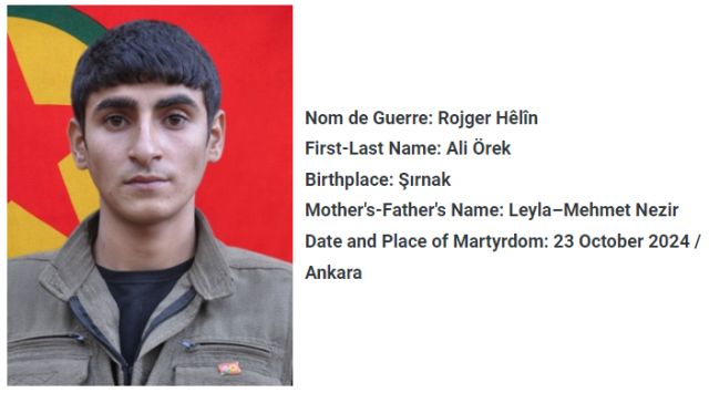 «Η ενέργεια αυτοθυσίας, που διαπράχθηκε μέσα στο συγκρότημα της TUSAS στην Άγκυρα γύρω στις 15.30 της Τετάρτης 23 Οκτωβρίου, πραγματοποιήθηκε από μία ομάδα του “Τάγματος των αθανάτων”», ανέφερε το PKK που παραθέτει τα ονόματα των δύο επιτιθέμενων, ενός άνδρα και μίας γυναίκας.