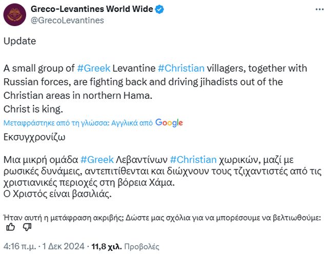— Greco-Levantines World Wide (@GrecoLevantines) November 30, 2024