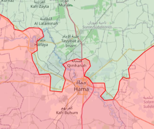 Οι νεο-οθωμανοί/φιλότουρκοι τζιχαντιστές περικύκλωσαν την Τετάρτη από «τρεις πλευρές» τη Χάμα, ανέφερε το Συριακό Παρατηρητήριο Ανθρωπίνων Δικαιωμάτων, με έδρα τη Βρετανία, που διαθέτει ευρύ δίκτυο πηγών στη Συρία.