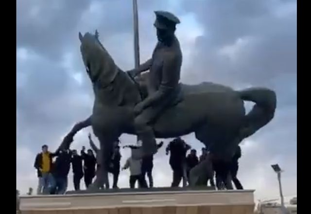 Διαδηλωτές γκρεμίζουν άγαλμα του έφιππου Άσαντ