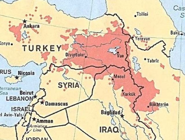 Το Κουρδιστάν διαιρεμένο μεταξύ Τουρκίας, Συρίας, Ιράκ και Ιράν. Ο Μπαρζανί είναι ο ισχυρός άνδρας του ιρακινού Κουρδιστάν.