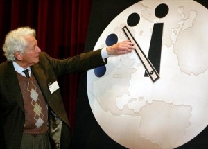 Κάθε χρόνο τα μέλη του διεθνούς Συμβουλίου Επιστήμης και Ασφάλειας -που αποτελείται από διακεκριμένους επιστήμονες και νομπελίστες- καλούνται να απαντήσουν αν η ανθρωπότητα είναι ασφαλέστερη ή κινδυνεύει περισσότερο φέτος ή κινδυνεύει περισσότερο σε σχέση με τα 78 χρόνια που μετράει το ρολόι.