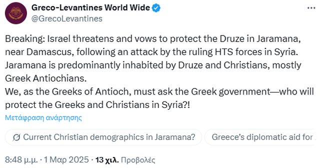 — The Greco-Syrian Nation (@GrecoNation) March 3, 2025