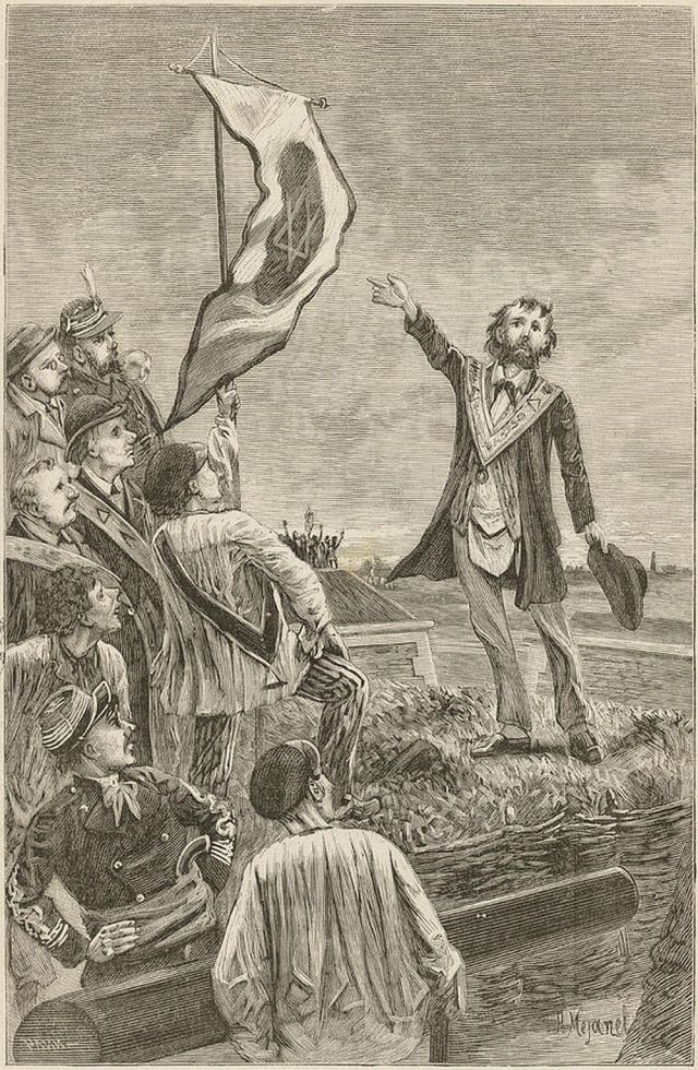 »Καταργήστε τα και τα σκότη θα μας καλύψουν…» και συνεχίζει «… Πρέπει να πούμε στις Βερσαλλίες, ότι εάν εντός 48 ωρών, από τη στιγμή που θα υψώσουμε τα Λάβαρα των Στοών μας πάνω στα οδοφράγματα, δεν προτείνουν μία λύση που να οδηγεί στην ειρήνη, ή εάν έστω και μία σφαίρα ή οβίδα τους, τρυπήσει τα Λάβαρά μας, τότε θα καταφύγουμε στα όπλα για να εκδικηθούμε αυτή τη βεβήλωση».