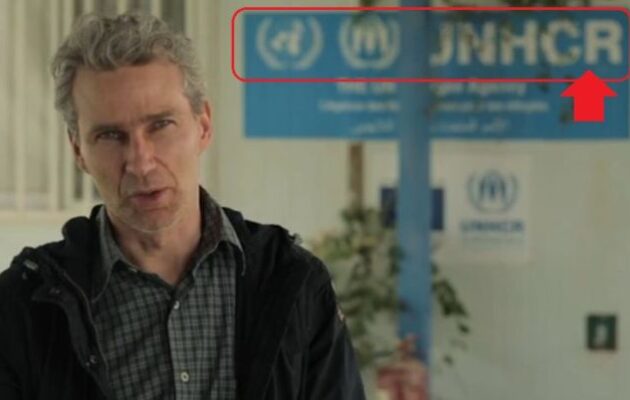 Λεζάντα: Στη φωτογραφία, πλάνο από βίντεο, ο Κρίστιαν Κέλιν μιλά με φόντο την ταμπέλα της UNHCR. Σημειώνεται ότι, η Ύπατη Αρμοστεία του ΟΗΕ για τους Πρόσφυγες (UNHCR) δεν εμπλέκεται άμεσα στην υπόθεση της «χρυσής βίζας» ή στις πρακτικές της Henley & Partners.