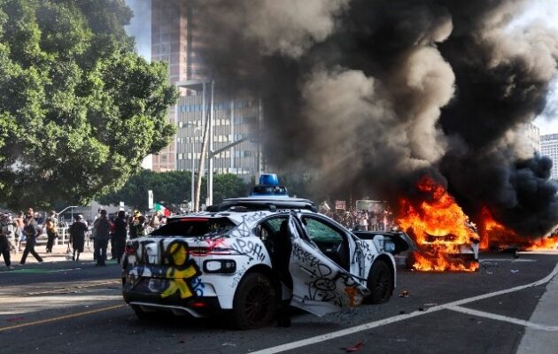 Πολλά αυτοκινούμενα οχήματα της υπηρεσίας ταξί Waymo πυρπολήθηκαν σε κεντρικό δρόμο του Λος Άντζελες το βράδυ της Κυριακής 08/06, σύμφωνα με εικόνες από βίντεο.