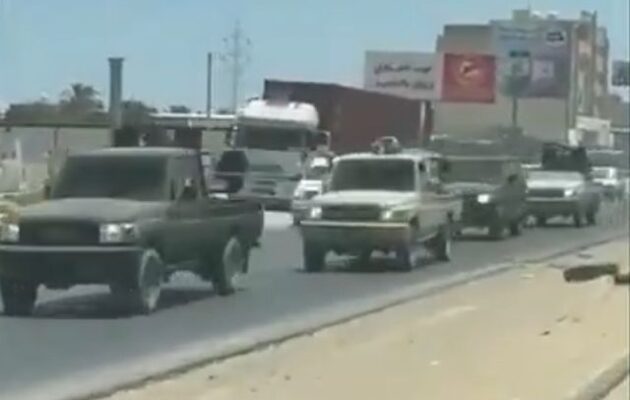 Σύμφωνα με τοπικές πηγές, μια μεγάλη αυτοκινητοπομπή ένοπλων οχημάτων [κεντρική φωτογραφία] από τη Μισράτα κατευθύνθηκε προς την πρωτεύουσα, Τρίπολη.
