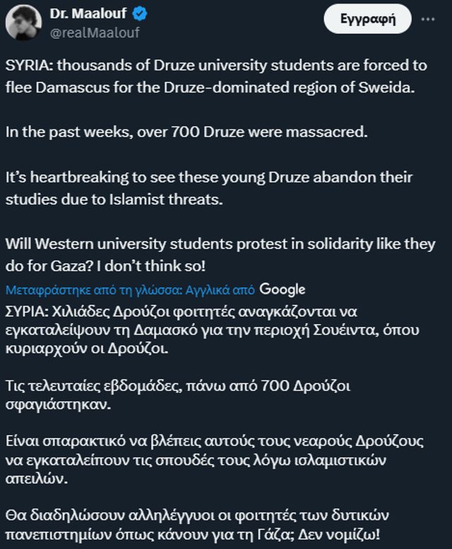 «Αυτός ο κύκλος βίας έχει εκραγεί με τρομακτικό τρόπο και αν δεν τελειώσει, οδεύουμε προς ένα λουτρό αίματος», προειδοποίησε ο Ραγιάν Μαρούφ, Δρούζος ερευνητής από τη Σουέιντα και υπεύθυνος της ιστοσελίδας Suwayda24.