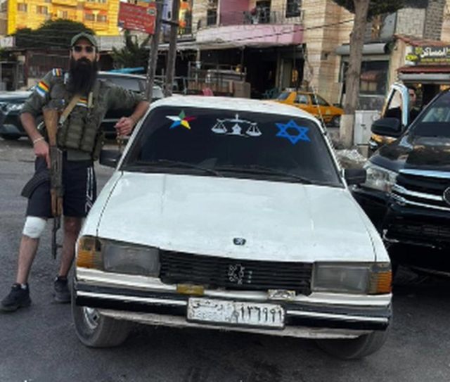Εν τω μεταξύ, στη Σουέιντα: ένα αυτοκίνητο με το αστέρι των Δρούζων και το αστέρι του Δαβίδ.