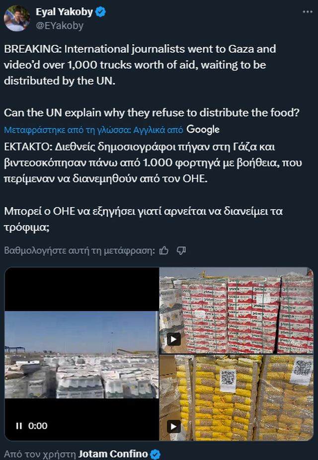 Παρά το γεγονός ότι 800 φορτηγά με βοήθεια περιμένουν στη Γάζα, ο ΟΗΕ αρνείται να τα διανείμει. Οι κατηγορίες για εσκεμμένη λιμοκτονία εντείνουν την πίεση στο Ισραήλ.