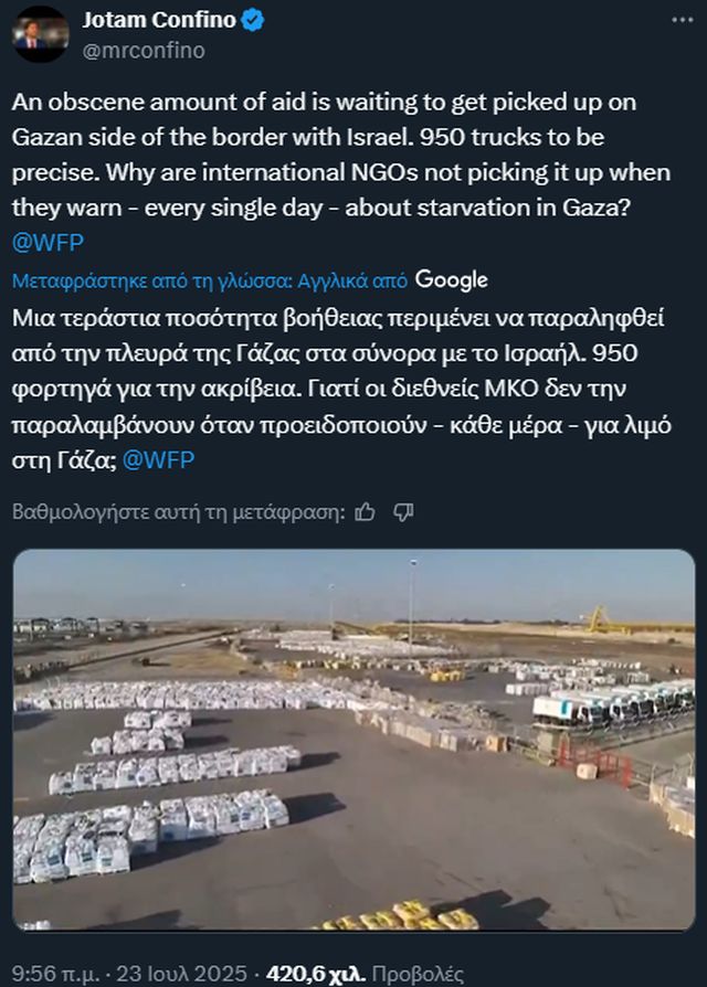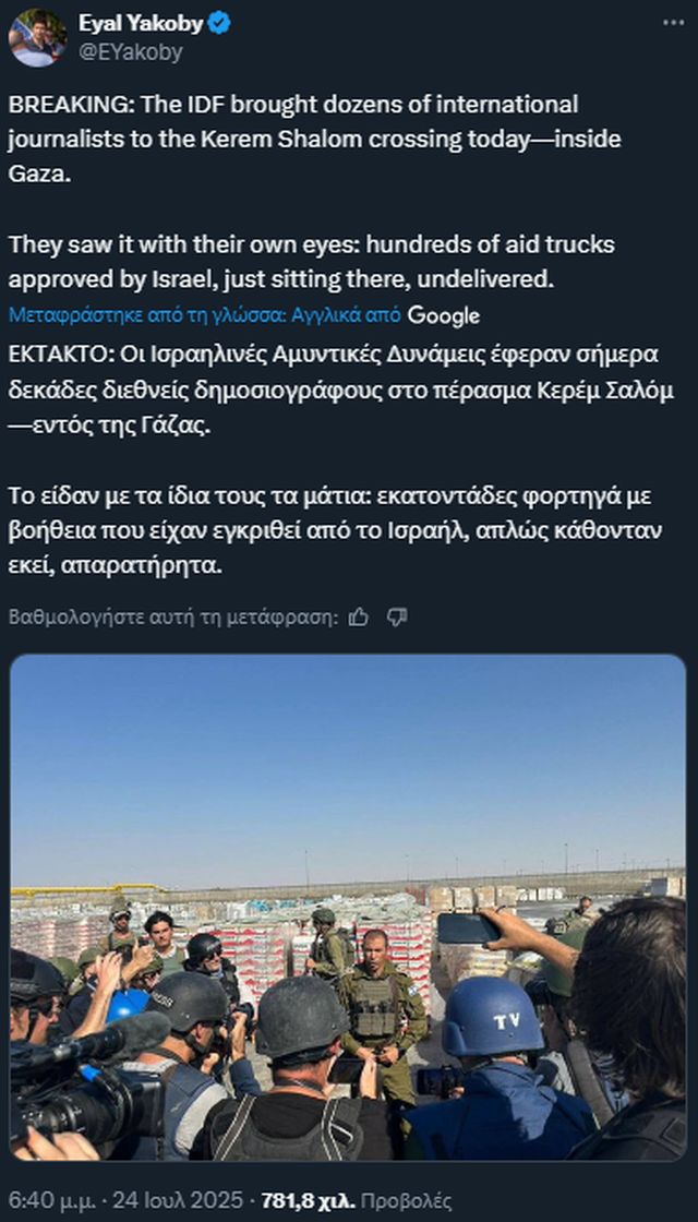 Η αλήθεια; Το Ισραήλ στέλνει ανθρωπιστική βοήθεια στη Γάζα, ακόμα και εν μέσω πολέμου.