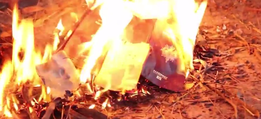 Το βίντεο κλείνει με ένα πλάνο που δείχνει να καίγονται τα διαβατήρια των “Γάλλων” τζιχαντιστών.