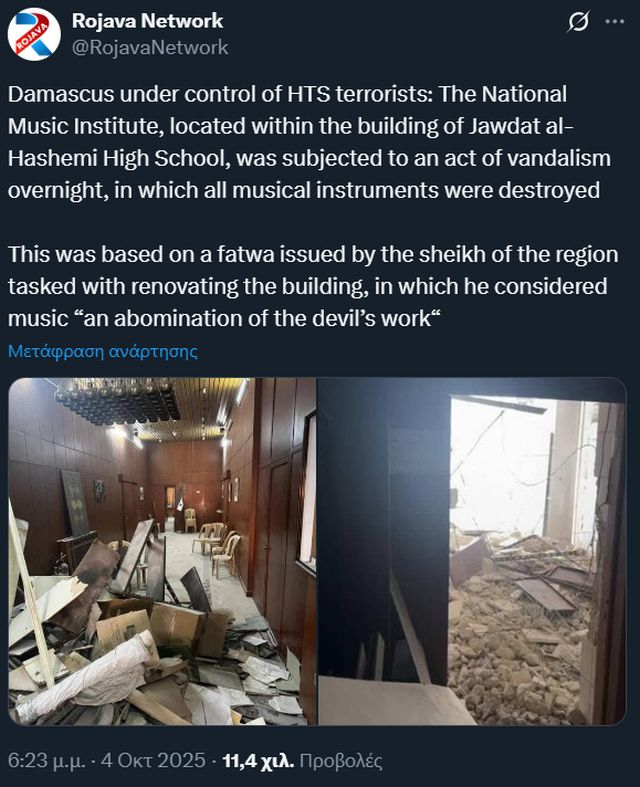 Συγκεκριμένα, το Εθνικό Μουσικό Ινστιτούτο, που στεγάζεται εντός του κτιρίου του Λυκείου Τζαουντάτ αλ-Χασέμι (Jawdat al-Hashemi), υπέστη πράξη βανδαλισμού κατά τη διάρκεια της νύχτας της Παρασκευής 03/10 προς Σάββατο 04/10, με όλα τα μουσικά όργανα να καταστρέφονται ολοσχερώς.