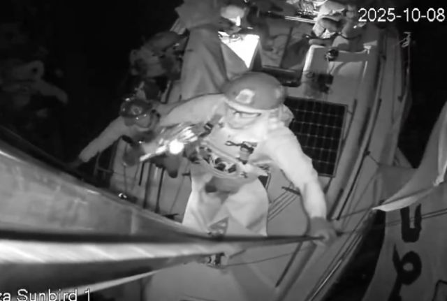 Βίντεο που δημοσιεύτηκαν από τους ακτιβιστές δείχνουν δυνάμεις του Ισραηλινού Ναυτικού να επιβιβάζονται στα σκάφη.