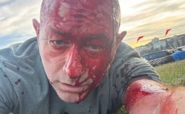 Ο Άρσεν Οστρόφσκι, που βρισκόταν με την οικογένειά του στην παραλία Μπόντι του Σίδνεϊ κατά τη διάρκεια της φονικής τρομοκρατικής επίθεσης της 14ης Δεκεμβρίου 2025 με πυροβολισμούς, σε φωτογραφία που δημοσιοποίησε αργότερα. Με επιδέσμους στο κεφάλι, περιέγραψε αμέσως μετά την επίθεση σε συνέντευξή του στην αυστραλιανή τηλεόραση.