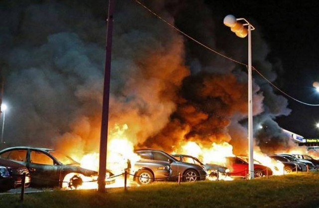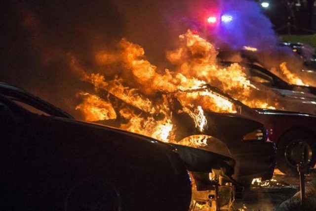 Δεκάδες κτίρια τυλίχθηκαν στις φλόγες και πολλά μαγαζιά λεηλατήθηκαν κατά τη διάρκεια των ολονύχτιων συγκρούσεων μεταξύ οργισμένων διαδηλωτών και αστυνομίας.
