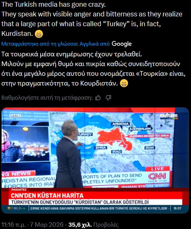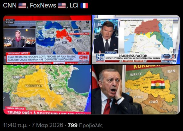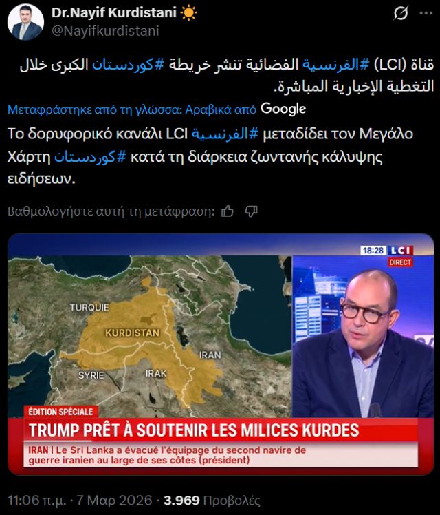 Παράλληλα, και το γαλλικό δορυφορικό κανάλι LCI δημοσίευσε χάρτη του Μεγάλου Κουρδιστάν κατά τη διάρκεια ζωντανής ενημερωτικής κάλυψης, ενισχύοντας το κλίμα αναταραχής στους τουρκικούς πολιτικούς και δημοσιογραφικούς κύκλους.