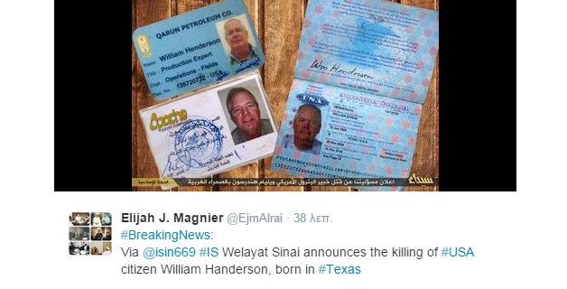 Διαβάστε σχετικά για ISIL, ISIS, Αίγυπτος, Ισλαμικό Κράτος, Ισλαμικό Κράτος στο Ιράκ και το Λεβάντε, Ισλαμιστές, Όμηροι (Αιχμάλωτοι), Ουίλιαμ Χάντερσον, Τζιχαντιστές, Χερσόνησος του Σινά,