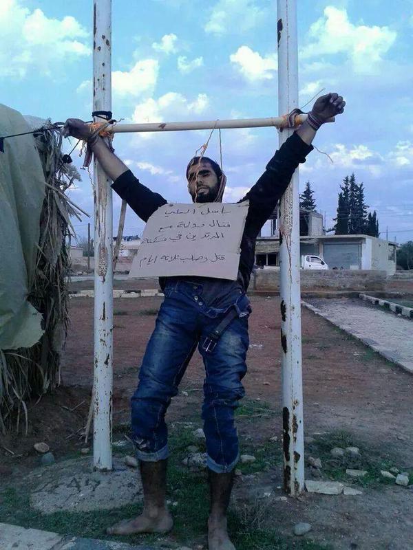 Απόδειξη ο Μπασίλ Αλί (φωτογραφία) που αφού σκοτώθηκε από το Ισλαμικό Κράτος στην Τζαραμπλούς, στη συνέχεια σταυρώθηκε δημοσίως για παραδειγματισμό.