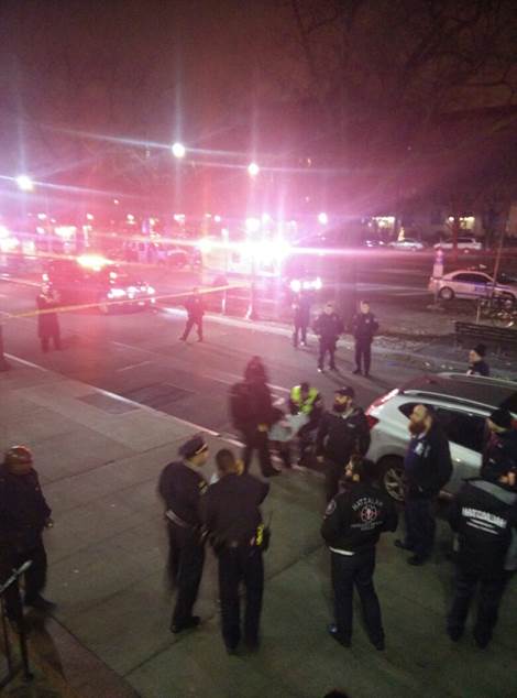 Η αστυνομία κατέφθασε στο σημείο και πυροβόλησε τον δράστη, ο οποίος είναι Αφροαμερικανός.