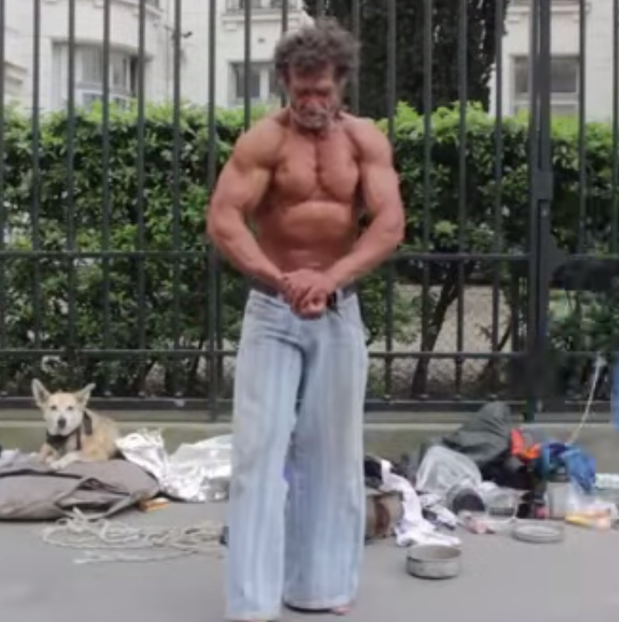 «Δε θέλω να ζω σε ένα μικρό διαμέρισμα. Οι άνθρωποι δεν κατανοούν το λόγο που εγώ κοιμάμαι στο πεζοδρόμιο, αλλά ποτέ δεν αισθάνομαι το κρύο» δήλωσε ο μυώδης άνδρας στο βίντεο που κινηματογράφησε ο Julien Goudichaud και έχει κάνει θραύση στο youtube.