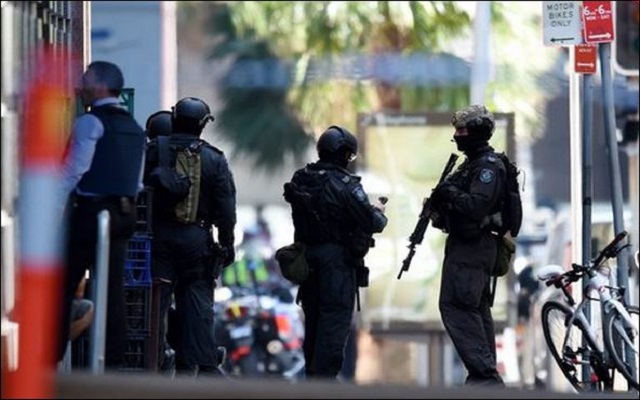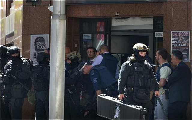 Το κέντρο του Σίδνεϊ έχει παραλύσει, πολλά δημόσια κτίρια όπως η Όπερα και η Βιβλιοθήκη έχουν εκκενωθεί και γύρω από το καφέ όπου κρατούνται οι όμηροι βρίσκονται πυροσβεστικά οχήματα και οχήματα πρώτων βοηθειών και πολυάριθμοι ένοπλοι αστυνομικοί.
